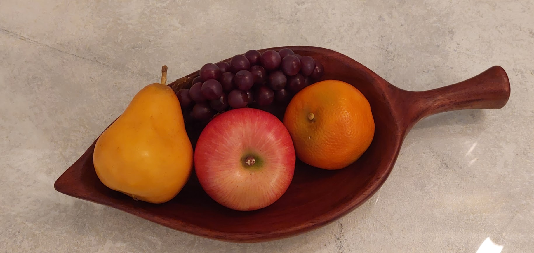 A very tactile and decorative beautifully carved wooden bowl in the shape of a leaf. Ideal for a fruit bowl but could also be used at dinner parties or for display purposes. This elegant and simple bowl is sure to please.